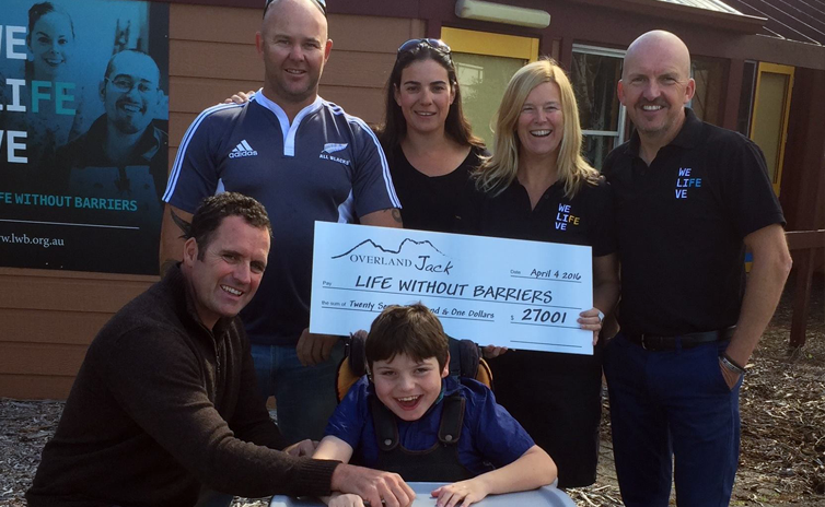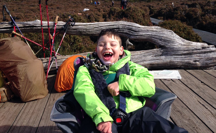 In April 2015, Jack completed the 65km Overland Track (Overland Jack) over 6 days. He was carried on his Dad’s back and was supported by a small hiking team (including police, firefighters and a paramedic). Together the team raised $30,000 for Life Without Barriers.